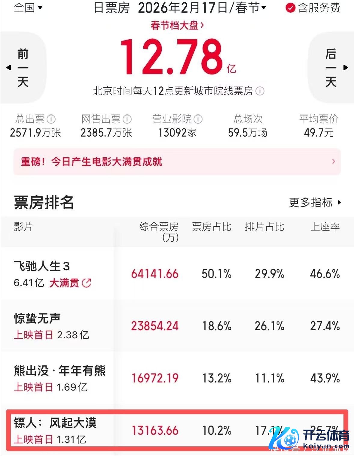 紧随春节档领头羊《飞奔东谈主生3》之后;