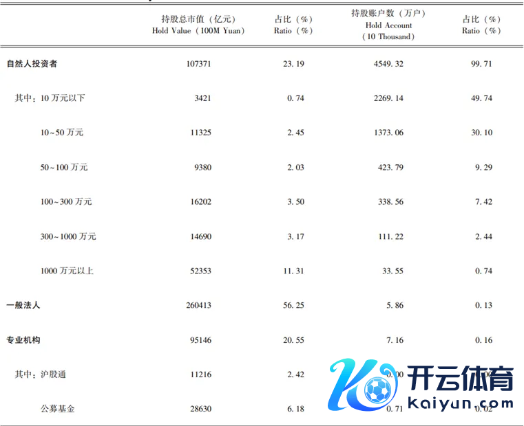 再看一下投资者的资金结构。2023年末,上交所的个东说念主投资者中账户50万元以下占80%,只捏有了3.2%总市值的股票,捏有市值在系数个东说念主投资者中占13.8%。