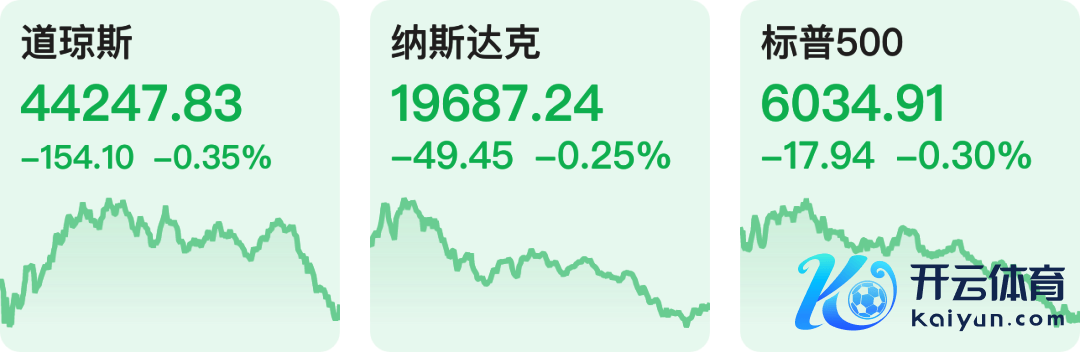 好意思东时分周二,好意思股三大指数集体收跌。 扫尾收盘,谈琼斯指数跌0.35%,纳斯达克指数跌0.25%,标普500指数跌0.3%。