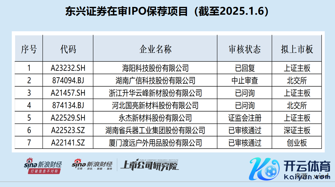 不仅是已上市表情,东兴证券现在在审的IPO表情亦然疑窦重重。wind透露,狂妄2024年1月6日,东兴证券在审的IPO表情数目(以来往所受理为圭臬)有 7家,其中列队本事超两年的有4家,占比超五成。其中浙江升华云峰新材股份有限公司(下称“云峰新材”)列队本事超三年,朝上18个月未回应上交所的问询函。此外,东兴证券保荐的河北国亮新材料股份有限公司(下称“国亮新材”)亦然快要半年莫得回应监管问询。