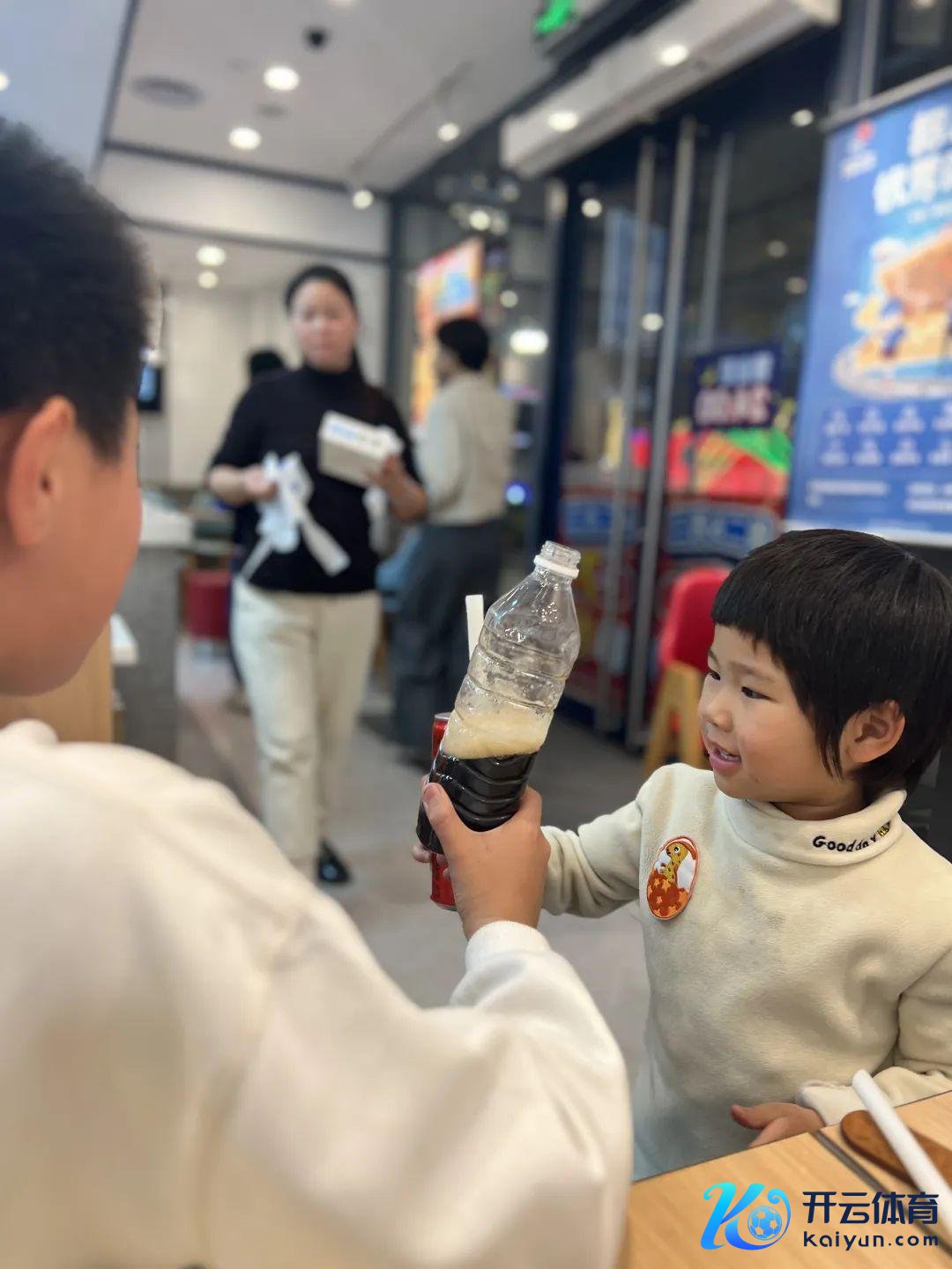先让他知说念一杯可乐4个东说念主不够,又从另一个角度说:可乐糖分高,没那么健康,咱们这餐吃得健康少许也挺好。每东说念主一杯的话,对妹妹来说一杯就太多了。 恰好借此机会和他分析事情的两面性。 其后再指引他唯有一杯若何办,意想拿吸管,大要是另外拿杯子来分的宗旨。