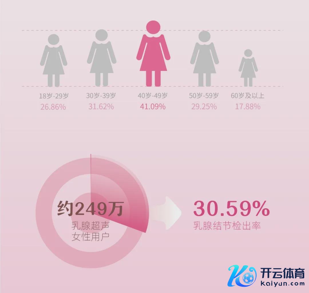 其中40岁-49岁女性,乳腺结节检出率最高,跳跃40%