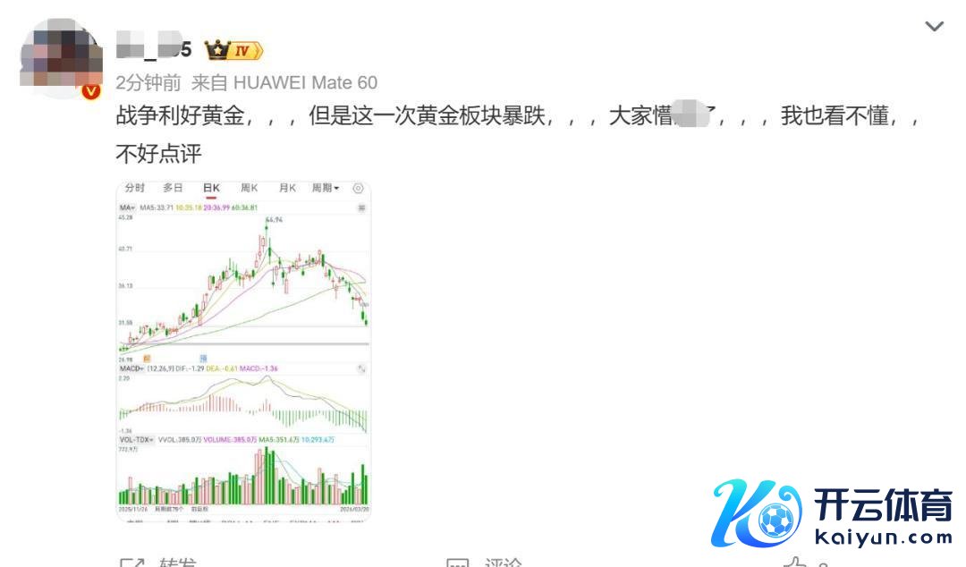 男人接连“抄底”,早先160克黄金后傻眼:已亏1万多“我不买的技巧开云体育(中国)官方网站,身边东谈主皆说买黄金赚了开云体育(中国)官方网站,若何我一上车,金价就跌了?难谈的确被我买崩了?”3月18日晚上9点多,杭州90后投资者郑先生边刷着中东方式,边盯着黄金行情,忍不住在投资群里接连提问。“每次一买就跌,况兼金价越走越低,照这样下去,啥技巧智商回本?”郑先生启动对黄金“避险之王”的成见产生怀疑。据潮新闻报谈,2月底,看到以色列和好意思国对伊朗发起军事打击后,郑先活泼了买黄金的念头。“不是说黄金避险嘛,方式这样着急,我念念总该涨一波。”郑先生在杭州滨江一家科技公司上班,天然从未买过黄金,但一直念念找契机早先。