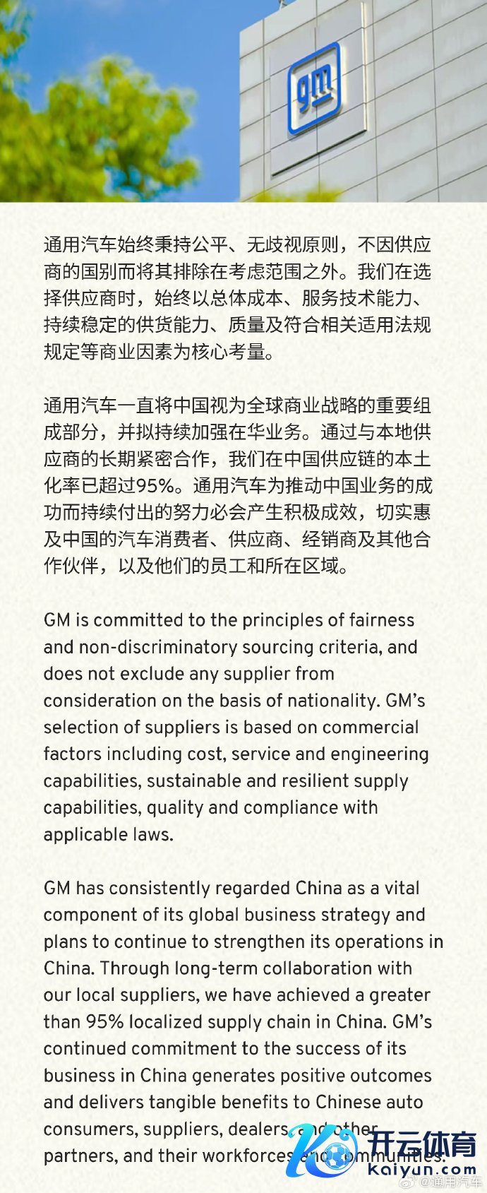 通用汽车:公司在中国供应链的原土化率已跨越95%开云体育通用汽车:公司在中国供应链的原土化率已跨越95%