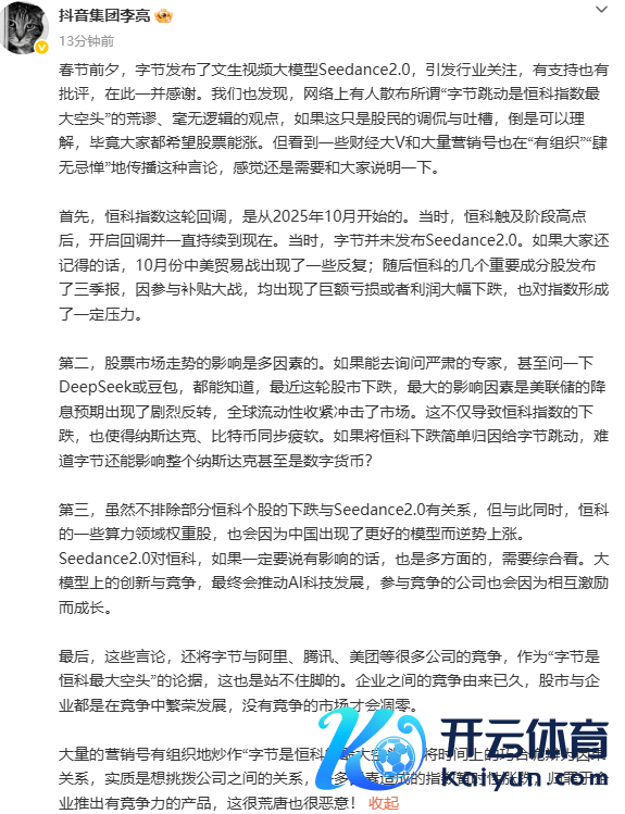 抖音集团李亮:炒作“字节是恒科的最大空头”很乖张也很坏心抖音集团李亮:炒作“字节是恒科的最大空头”很乖张也很坏心