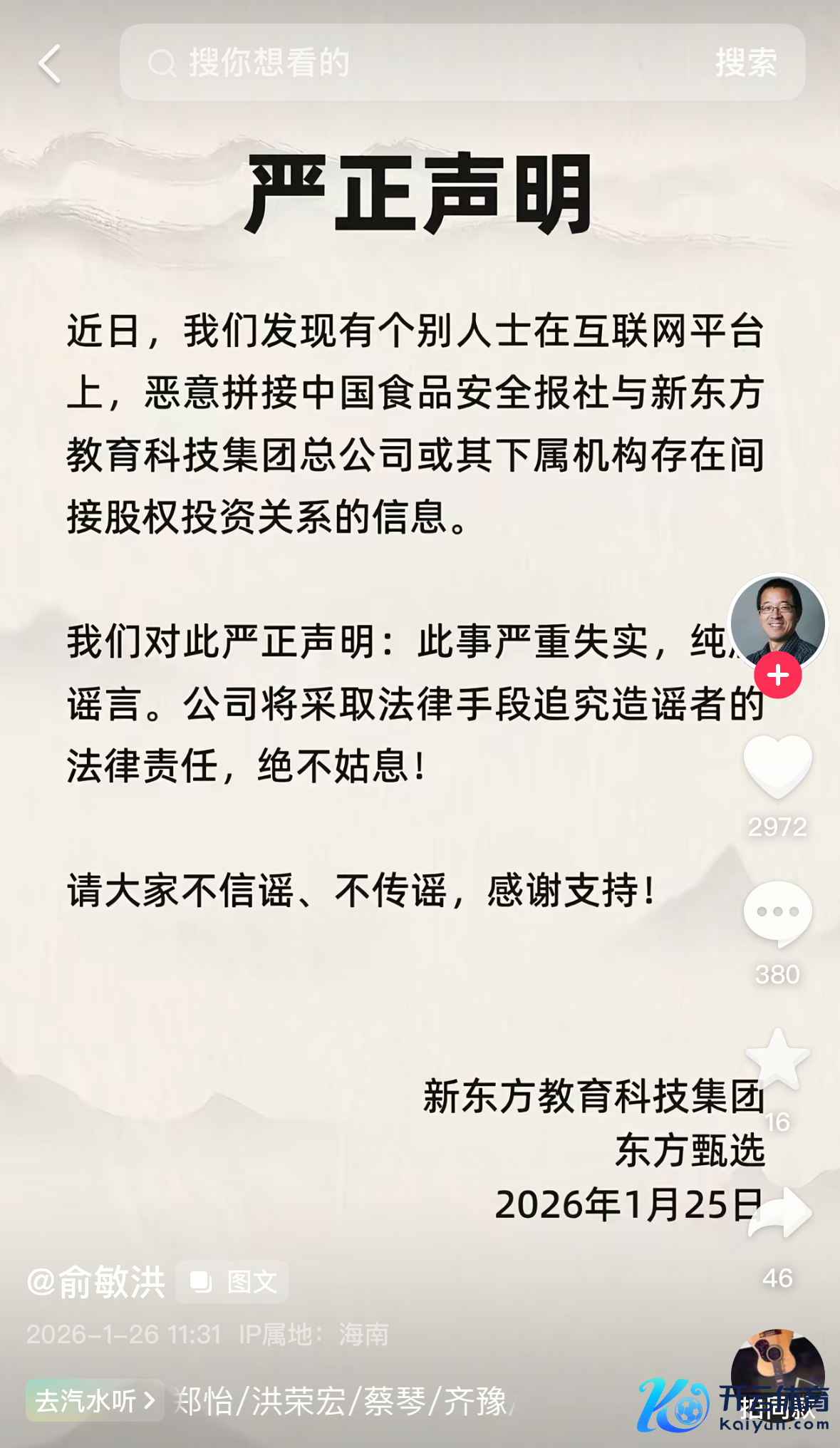 俞敏洪辟谣中国食物安全报社与新东方存在迤逦股权投资干系:严重罪状开yun体育网俞敏洪辟谣中国食物安全报社与新东方存在迤逦股权投资干系:严重罪状